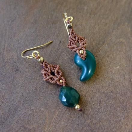 グリーンアベンチュリン 勾玉(インド産) マクラメ編みピアス 5月誕生石 マクラメアクセサリー プレゼントギフト 2024