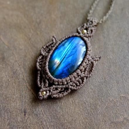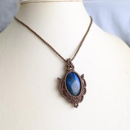 ラブラドライト(マダガスカル産)マクラメ編みペンダントネックレス 男女兼用可アクセサリー・プレゼント クリスマスギフト 3469