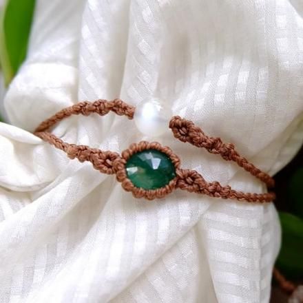 エメラルド(コロンビア産)・ムーンストーン3A(タンザニア産) 天然石マクラメ編みブレスレット プレゼント・クリスマスギフト 3617