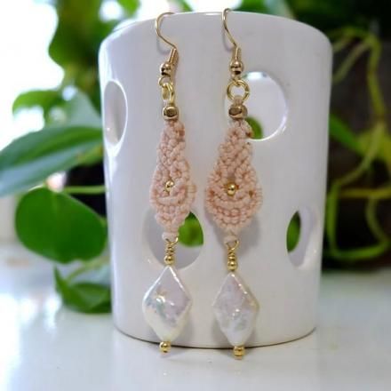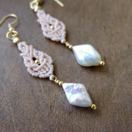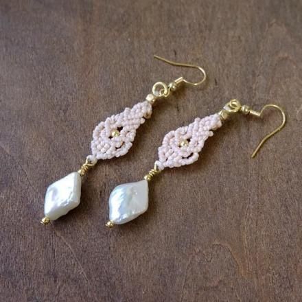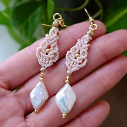 一つ一つ色や形が異なる天然の魅力的なバロックパールのマクラメ編みピアスです。