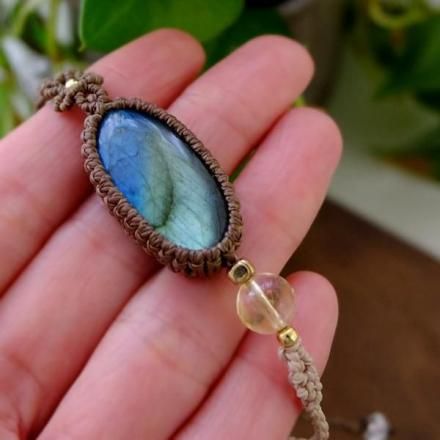 ラブラドライト・天然シトリン(虹入り)レインボーシトリン マクラメ編みブレスレット 誕生日プレゼントギフト(男女兼用可アクセサリー )3661