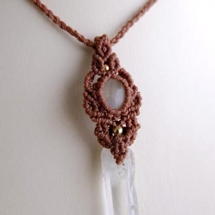 魅力的な天然石を丁寧に編み込んで、小ぶりサイズながらもさり気なく身に着けやすく印象的なマクラメペンダントに仕上げました。