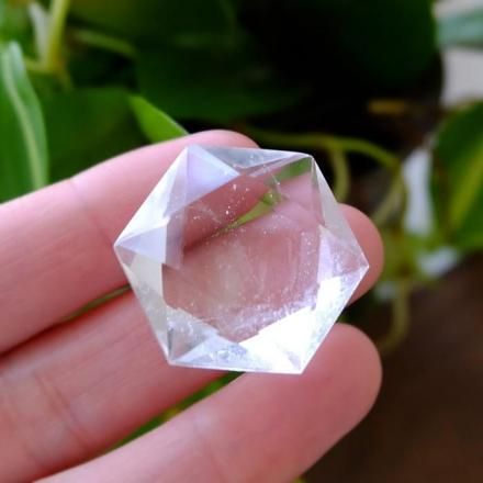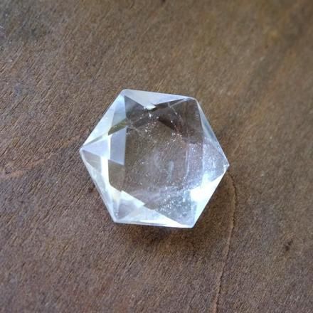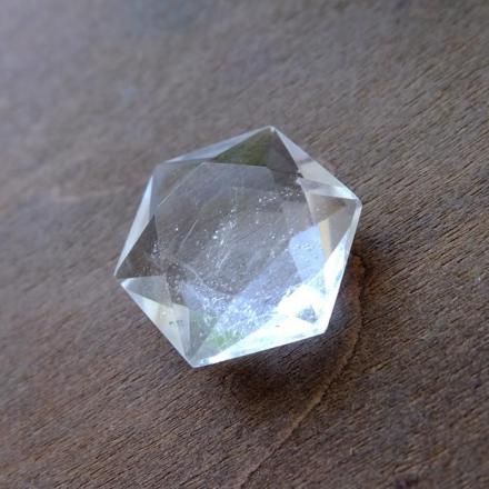 透明度の高い良質な水晶を使用したヘキサグラム(六芒星)内部のクラックも魅力的です。ご自身のお守り、ハンドメイド素材におすすめ。