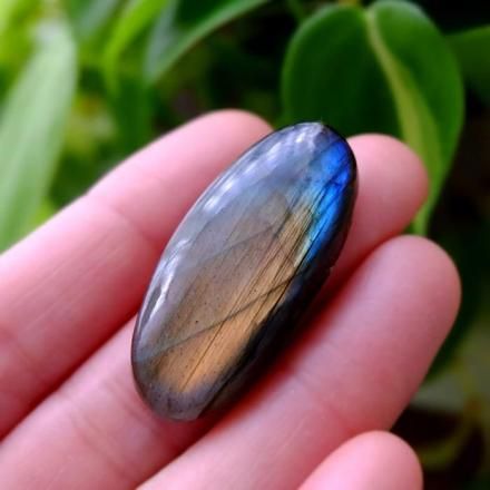 一見暗めな天然石ですが、光や見る角度によってあらわれる虹色の閃光(ラブラドレッセンス)が神秘的に煌めきます。「月や太陽の象徴」といわれオーロラの光を封じ込めたような美しさを持つ天然石です。