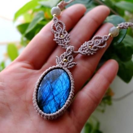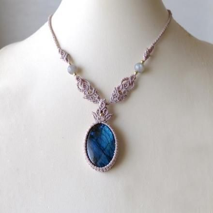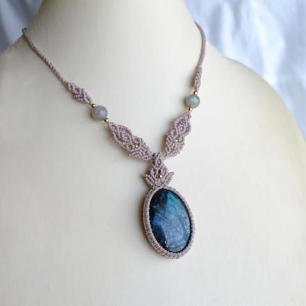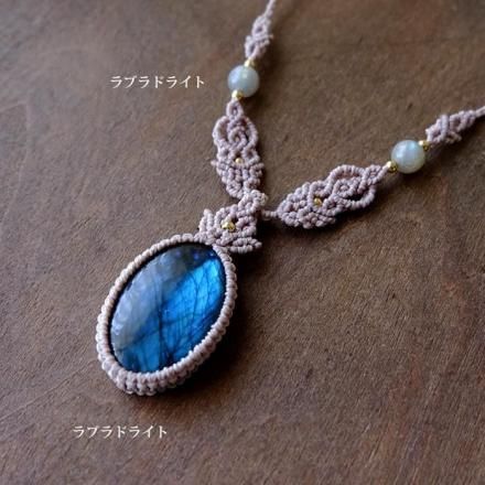 ラブラドライト(マダガスカル産)良質天然石マクラメ編みペンダントネックレス プレゼント・クリスマスギフト 3698