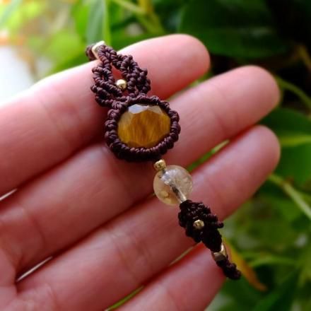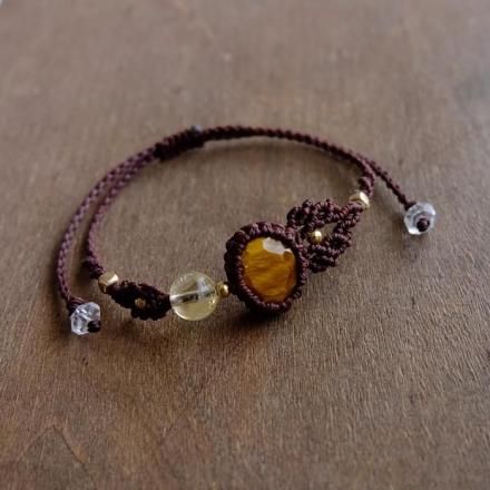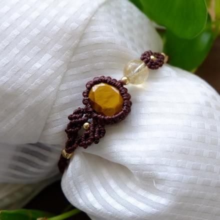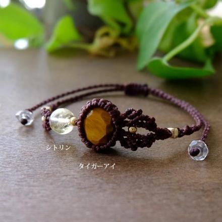 タイガーアイ(南アフリカ産)・天然シトリン(ブラジル産)11月誕生石 マクラメ編みブレスレット 男女兼用可アクセサリー・クリスマスギフト 3804