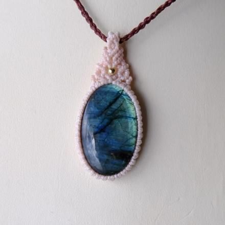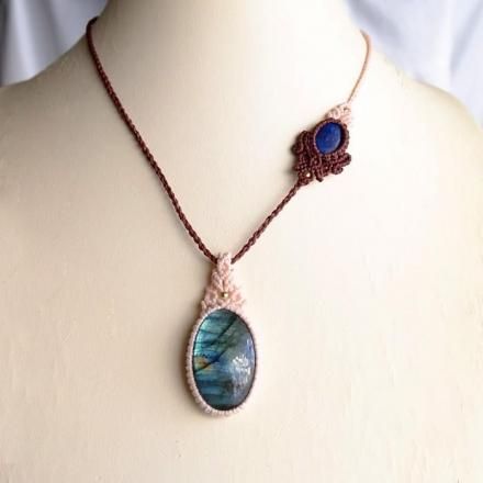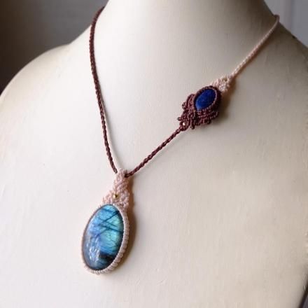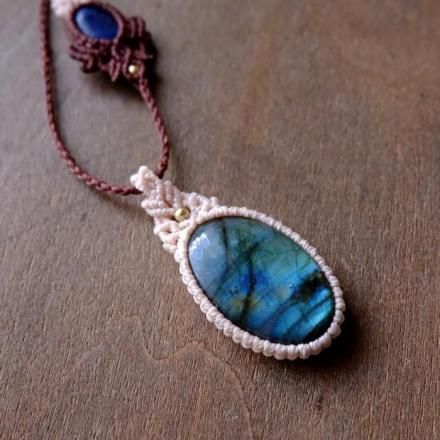 ラブラドライト(マダガスカル産)・ラピスラズリ(アフガニスタン産)マクラメ編みペンダントネックレス プレゼント・クリスマスギフト 3679